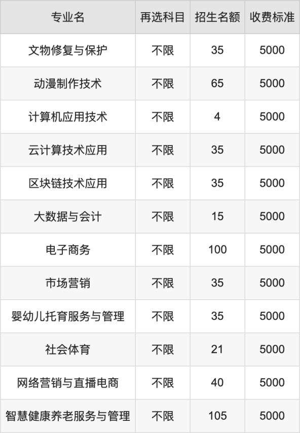 江西陶瓷工藝美術職業(yè)技術學院在歷史組高職??普猩母鱾€專業(yè),每年的學費是5000元。招生人數最多的專業(yè)是智慧健康養(yǎng)老服務與管理,2024年招105人,學費是5000元。