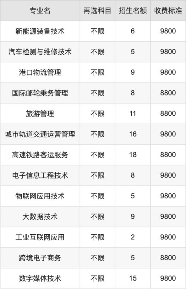 | 高職專科批 | 歷史 | 城市軌道交通運(yùn)營管理 | 16 |