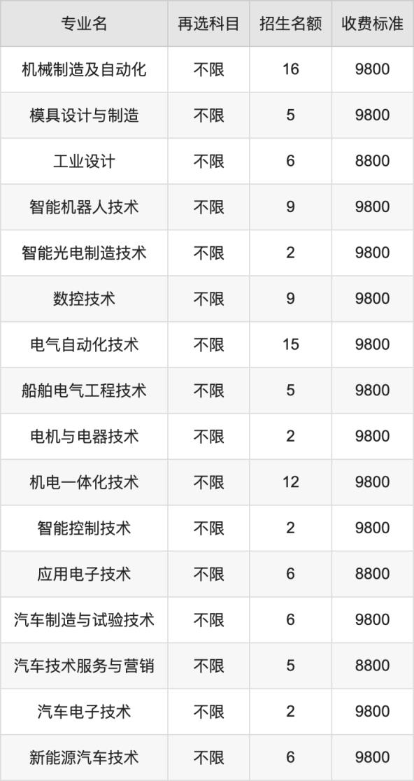 | 高職專科批 | 歷史 | 電機(jī)與電器技術(shù) | 2 |
