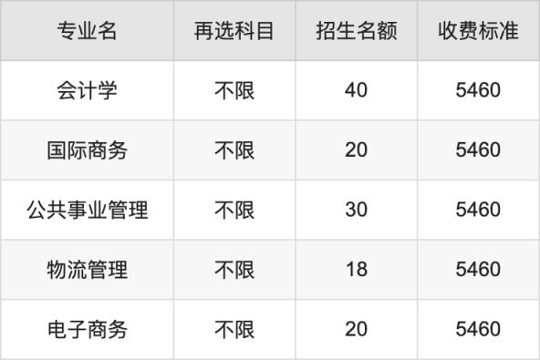 | 本科批 | 歷史 | 工商管理 | 20 |