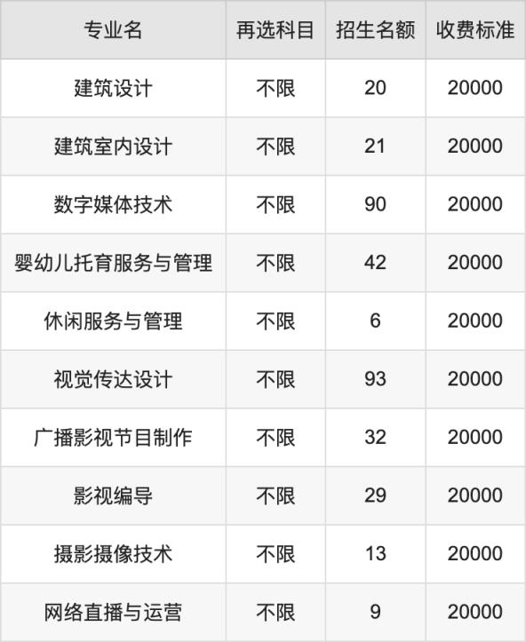 南京視覺(jué)藝術(shù)職業(yè)學(xué)院物理組??婆灿?jì)9個(gè)招生專業(yè),各專業(yè)每年的學(xué)費(fèi)是20000元。