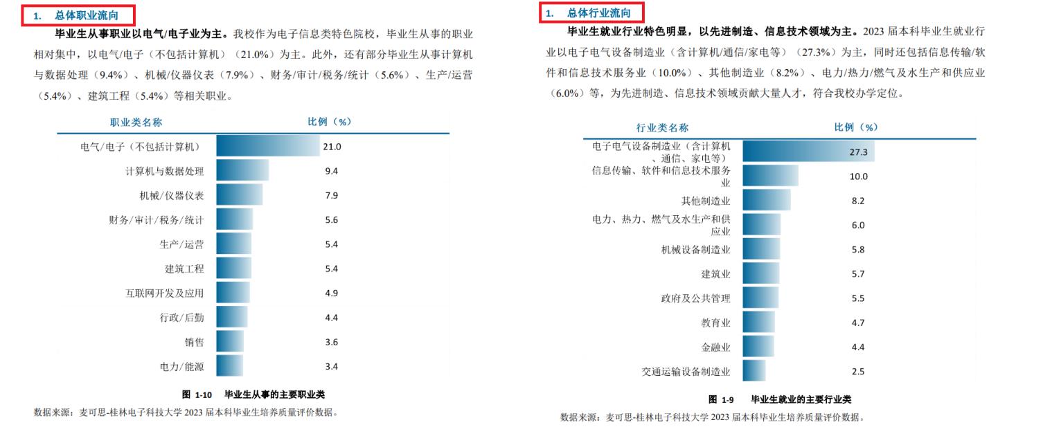 2023屆桂電畢業(yè)生去向落實(shí)率高達(dá)86.7%,主要流向先進(jìn)制造、信息技術(shù)領(lǐng)域?yàn)橹?,為電子信息、制造領(lǐng)域貢獻(xiàn)了大量人才。下圖為桂電2023年本科畢業(yè)生就業(yè)率及就業(yè)去向情況:
