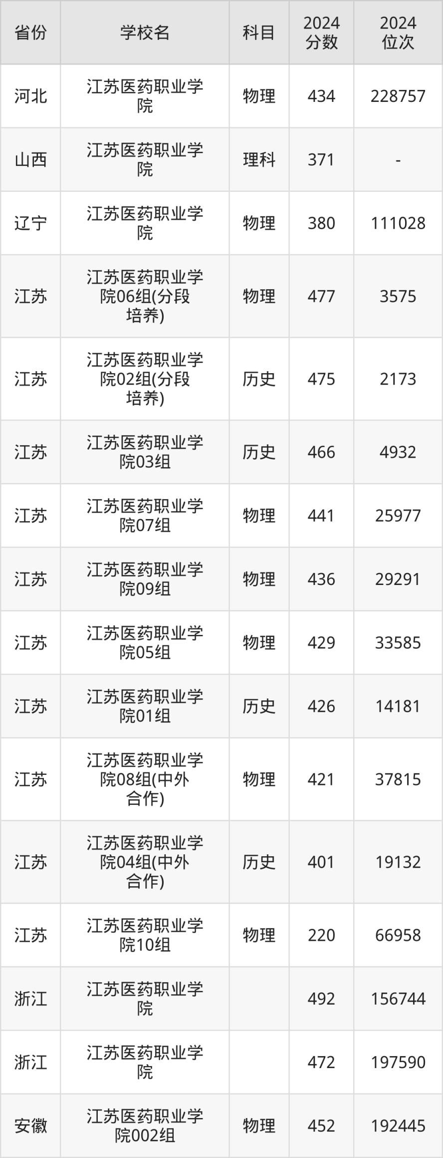 以2024年數(shù)據(jù)作為參考依據(jù),整理江蘇省內(nèi)、省外考江蘇醫(yī)藥職業(yè)學(xué)院要多少分。