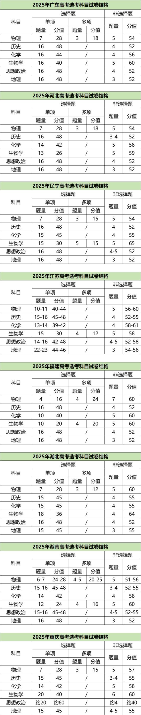 以下將展示全國各省2025年高考用卷預(yù)測情況,并附上各省高考選考科目試卷結(jié)構(gòu)情況,可供查閱。