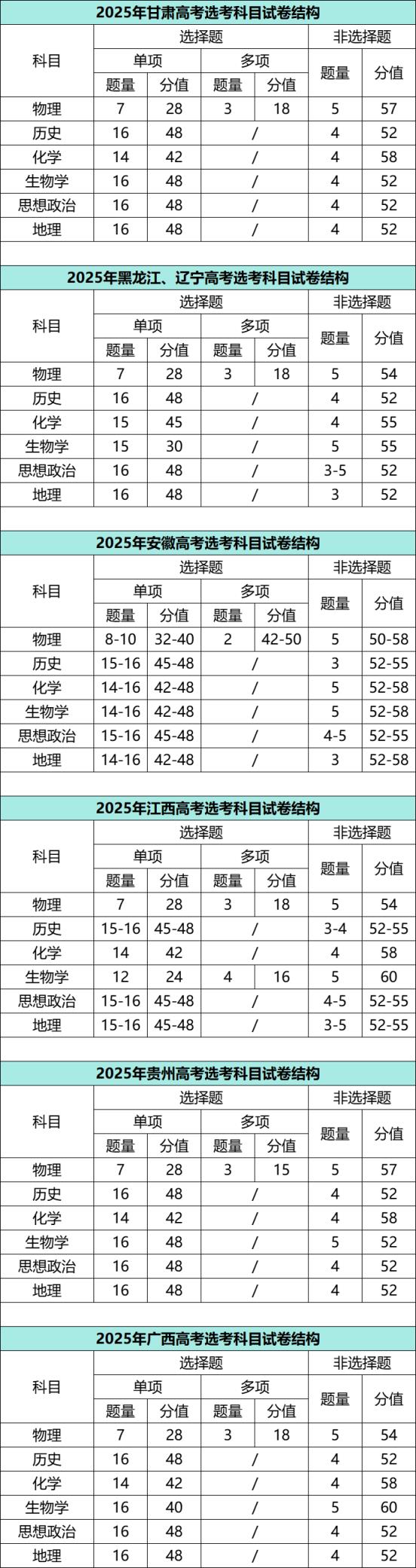 | 2025年海南高考選考科目試卷結(jié)構(gòu) | ||||||