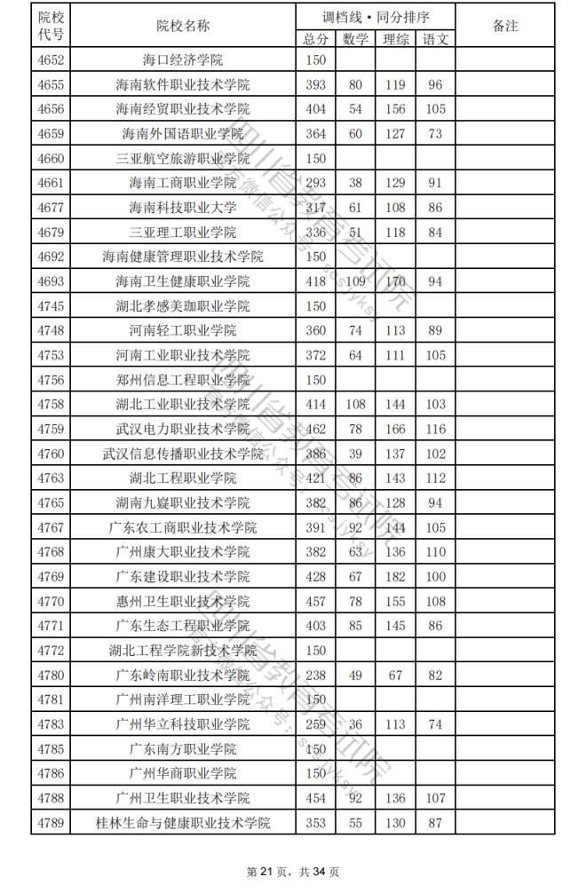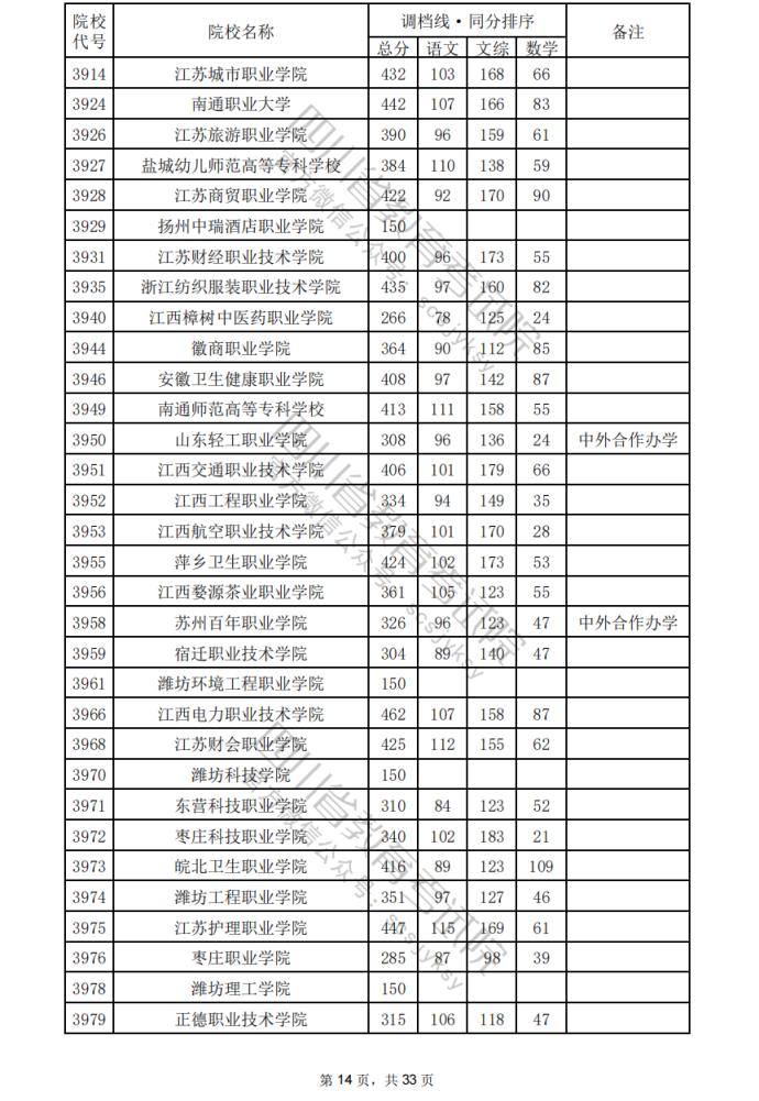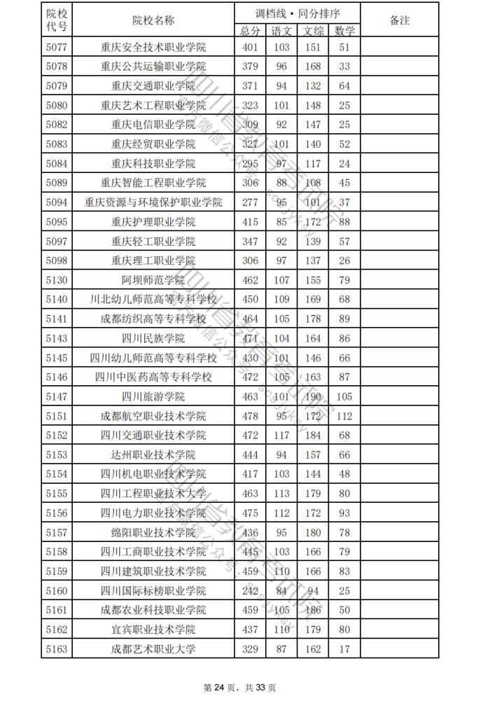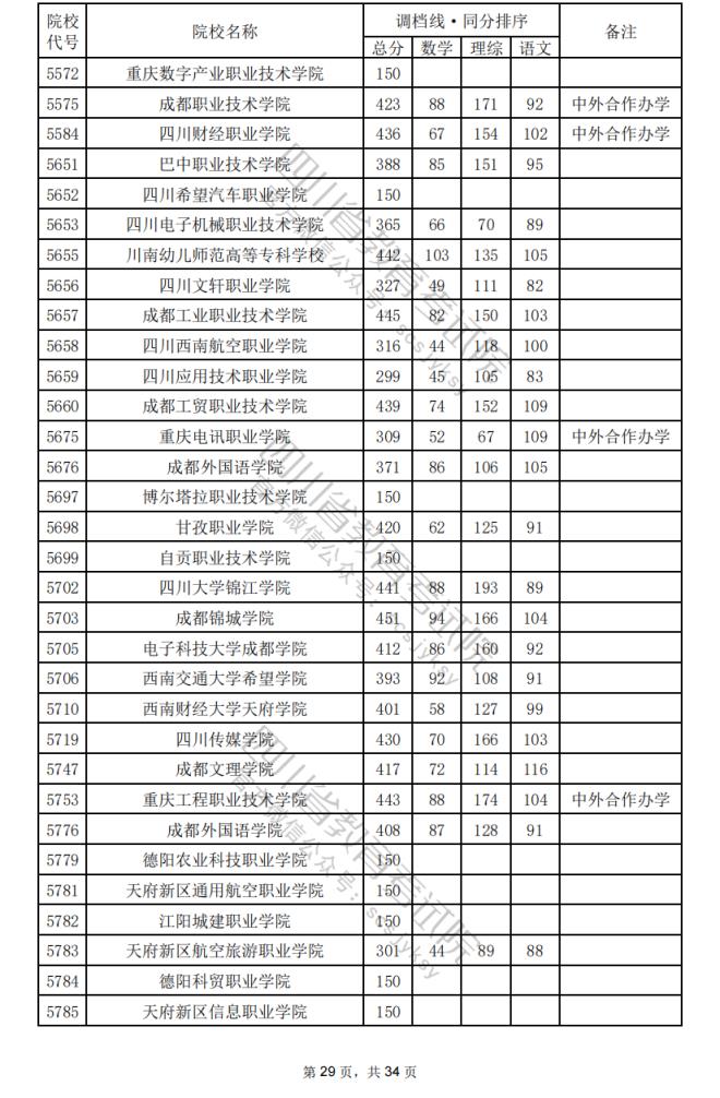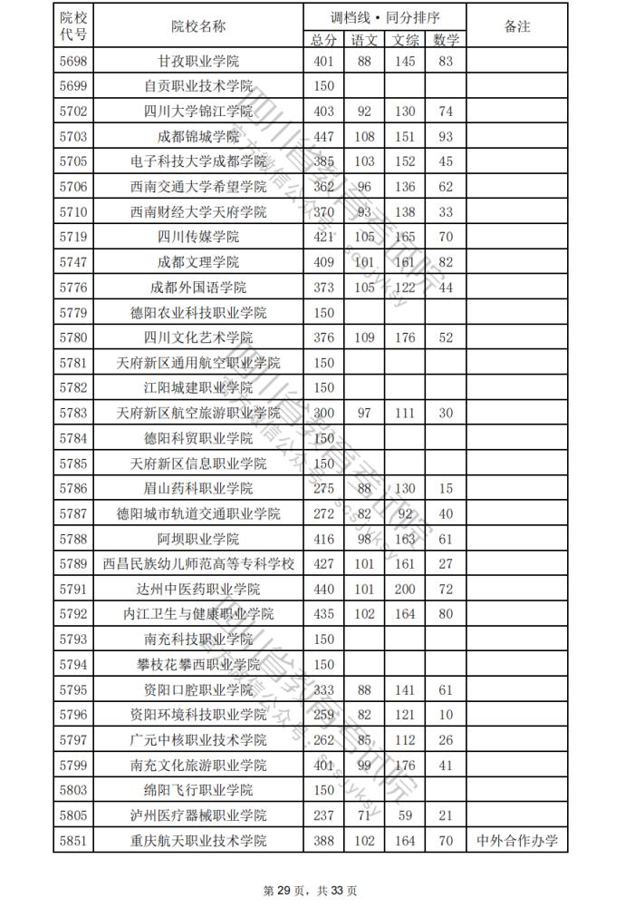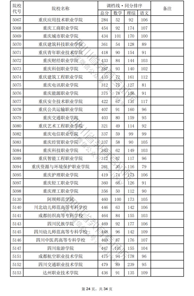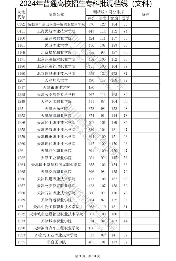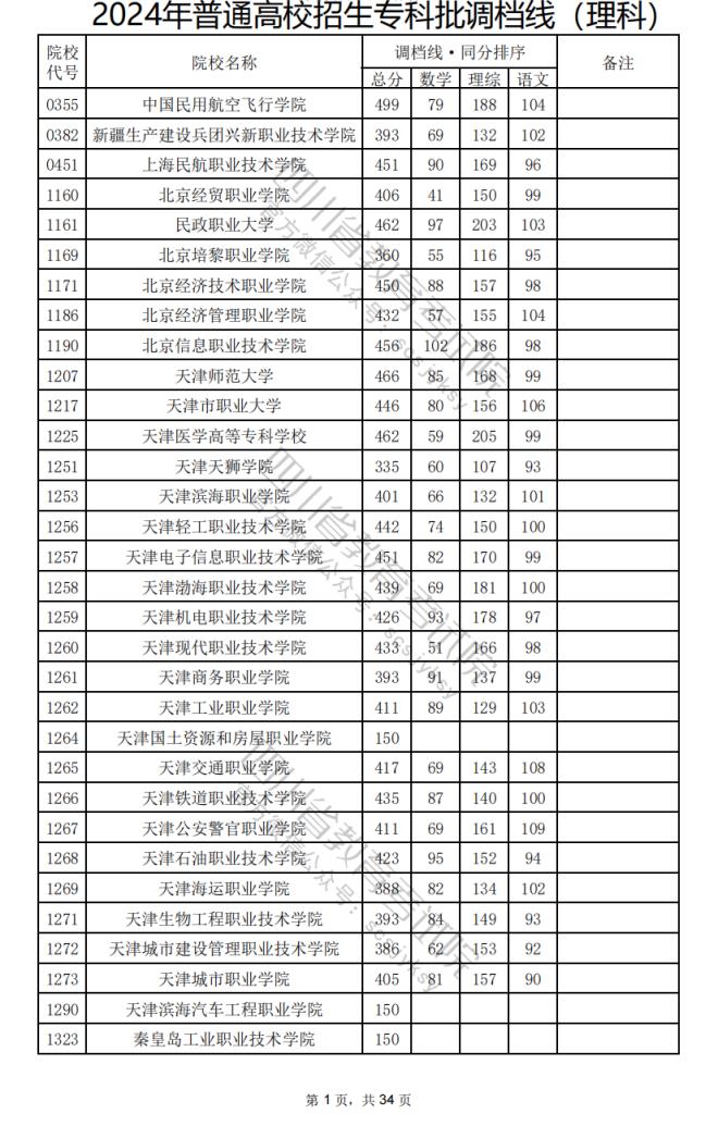 2024年四川??婆盒U{(diào)檔分數(shù)線公布(含文理科??婆稒n情況)