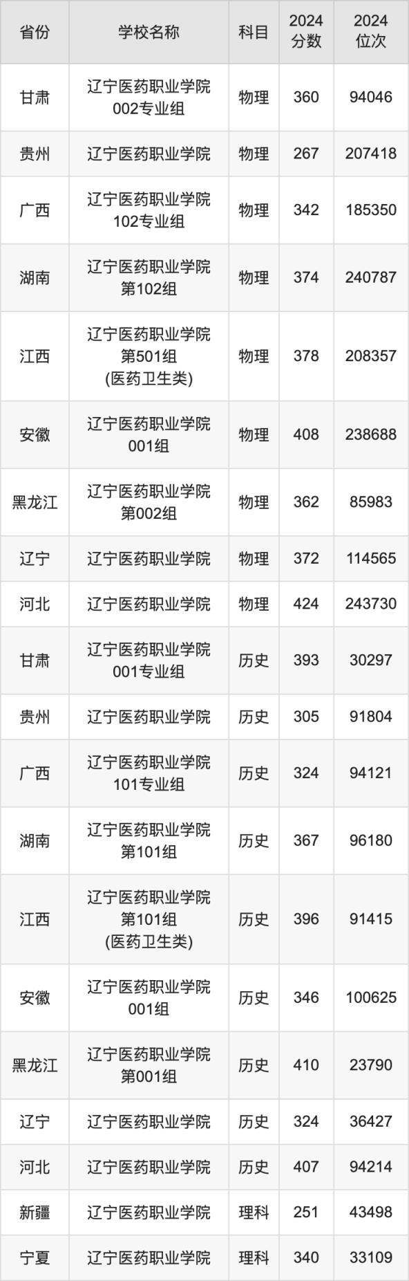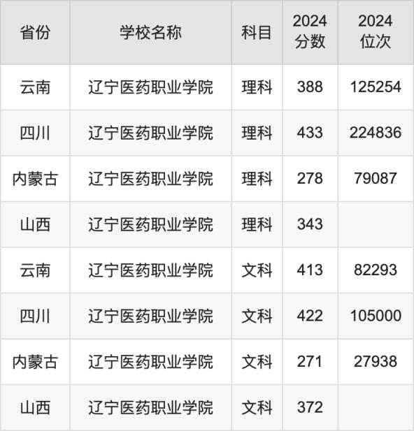 2024遼寧醫(yī)藥職業(yè)學院錄取分數(shù)線匯總:全國各省最低多少分能上