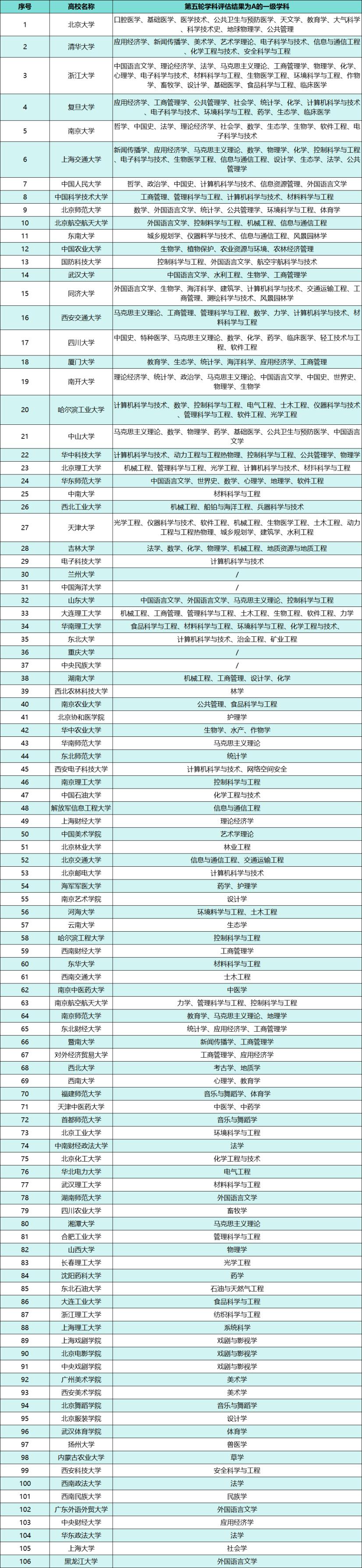 (一)第五輪學(xué)科評(píng)估結(jié)果為A+的大學(xué)及學(xué)科名單