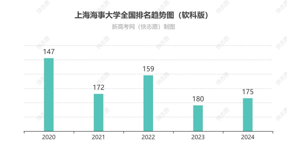 從歷年排名變化趨勢圖可見:上海海事大學(xué)在全國排名2024為第175位、2023為第180位、2022為第159位、2021為第172位、2020為第147位,最近兩年排名呈上升趨勢,綜合實(shí)力有所提高。