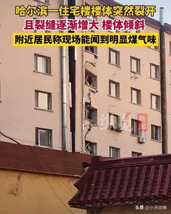 哈爾濱一住宅樓從中間裂開了