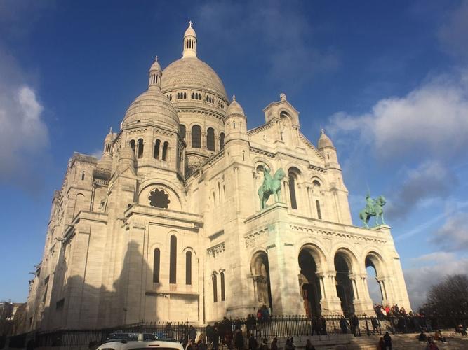 圣心大教堂位于蒙馬特高地,以其白色圓頂和壯麗的城市全景吸引游客,是巴黎的最高點之一。
