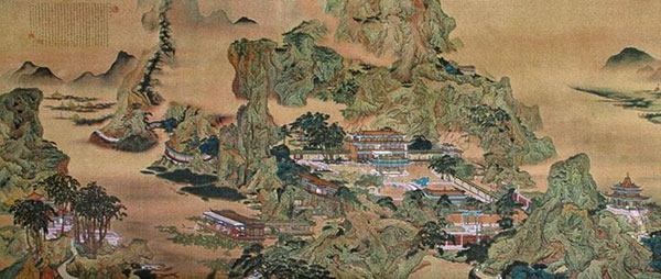六國覆滅,天下統(tǒng)一。蜀山中的樹木被砍光了,阿房宮建成了。它覆蓋了三百多里的地面,幾乎遮蔽了天日。從驪山北面建起,折向西面的咸陽。渭水和樊川清波蕩漾,緩緩流進(jìn)了宮墻。五步一座高樓,十步一座亭閣,長廊如腰帶,回環(huán)縈繞,屋檐高挑,像鳥嘴一樣的向上啄起,亭臺(tái)樓閣各依地勢(shì),向心交錯(cuò)。盤盤繞繞,曲曲折折,像蜂房那樣密集,像水渦那樣起伏,巍峨聳立,不知道它們有幾千萬個(gè)院落。那長橋橫臥在水面上,沒有云聚風(fēng)起,卻怎么像有蛟龍飛騰?那閣道架在半空中,并非雨過天晴,卻怎么像有長虹橫空?亭榭池苑高低錯(cuò)落,使人辨不清南北東西。樓臺(tái)上歌聲響起,讓人感到春天里的融融暖意;大殿里舞袖揮動(dòng),帶起一片風(fēng)雨凄迷。同一天內(nèi),同一宮中,氣候冷暖竟截然不同。